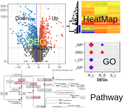 quality filter, transcript assembly, annotation, expression level, differential expression gene (DEG) analysis, enrichment of GOs, KEGG pathways;